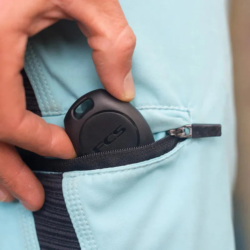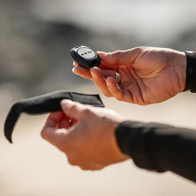 Kann an jeder Leash-Manschette befestigt werden. Kann in Boardshorts oder einer Neoprenanzug-Schlüsseltasche verstaut werden.