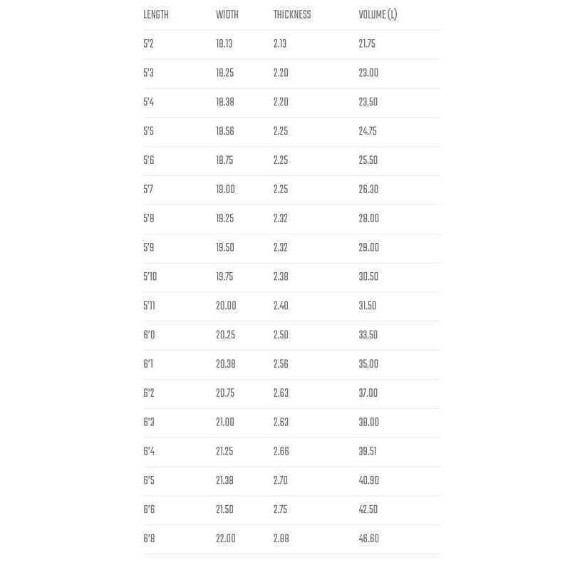 On a recent surf trip to Indonesia, I realized nearly everyone in our crew had a QuiverKiller. The thing was, they were all custom ordered and had significantly more volume than our current stock dims. Being a board for not only young rippers but older guys as well, I decided to take a look at the sizing scale. The stock dims tend to force a lot of guys to go longer than wanted to net enough volume.