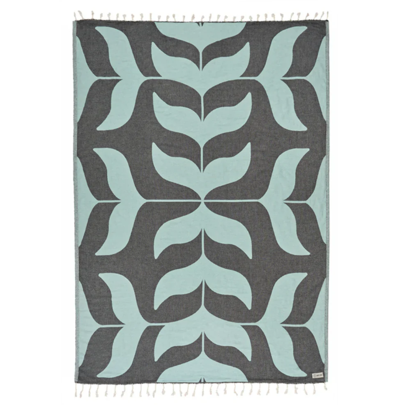 Whale-Tail-Design, hergestellt aus türkischer Bio-Baumwolle für ein weicheres Handgefühl und ein nachhaltigeres Produkt, große Größe, einfache Jacquard-Webart, gedrehte Quasten und sandabweisend.
